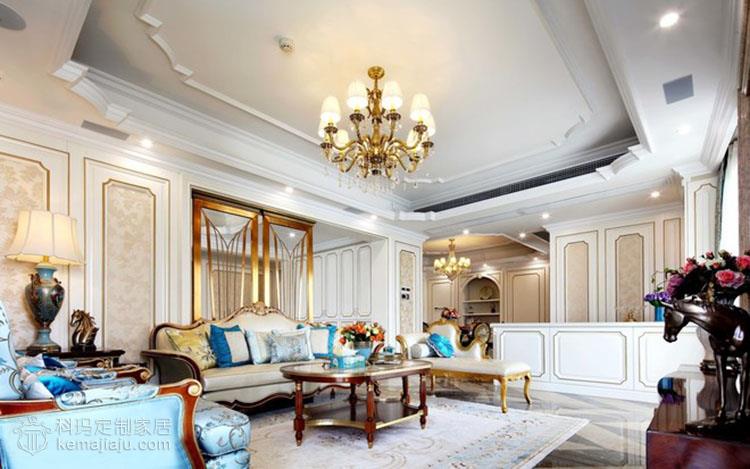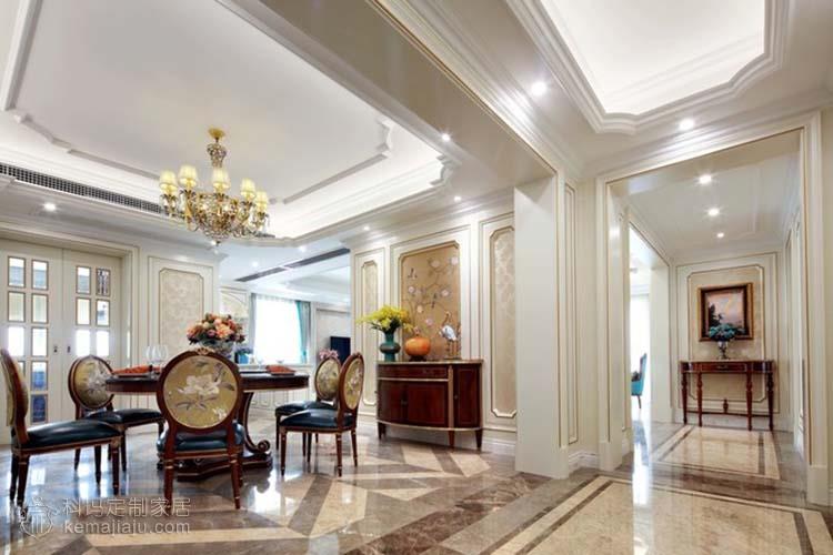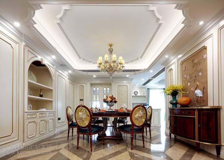 法式家居常用洗白处理与华丽配色,洗白手法传达法式乡村特有的内敛特质与风情,配色以白、金、深色的木色为主调。布局上突出轴线的对称,恢宏的气势,豪华舒适的居住空间。