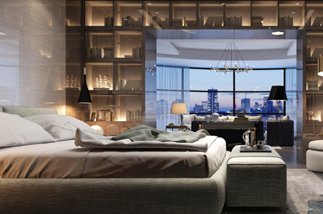 卧室给黄瓜官网在线视频的视觉带来了一种净化的感觉,为了使卧室不显单一,使用了较为亮的金色软包和圣诞树型的作为床背。清爽简约,却不失奢华。有条不紊的大型衣柜,就不怕没地方放衣物啦!